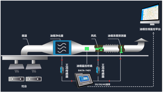 天之藍油煙凈化系統囊括:智能監測平臺、油煙凈化設備、油煙監測設備、信號傳輸設備、通風排煙設備(風機、管道)等。